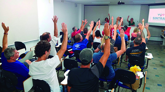 Se teve uma luta que foi marca de 2023, foi a da defesa da segurança nos bancos. Contra o Projeto de lei 18459, de autoria do vereador Katumi, o Sintrafi esteve desde abril em diálogo com os vereadores, com a prefeitura, Procon e Ministério do Trabalho, mostrando os riscos para a população da aprovação dessa lei que desobriga as agências de Florianópolis de terem portas de segurança. Atos lúdicos foram realizados em diversas agências e a população se mostrou contrária a este projeto. Apesar de toda mobilização, o PL foi aprovado e sancionado no final do ano pelo prefeito Topázio. Mas a luta ainda não acabou, o sindicato prepara uma grande campanha de denúncia a todos que foram coniventes com a insegurança bancária.